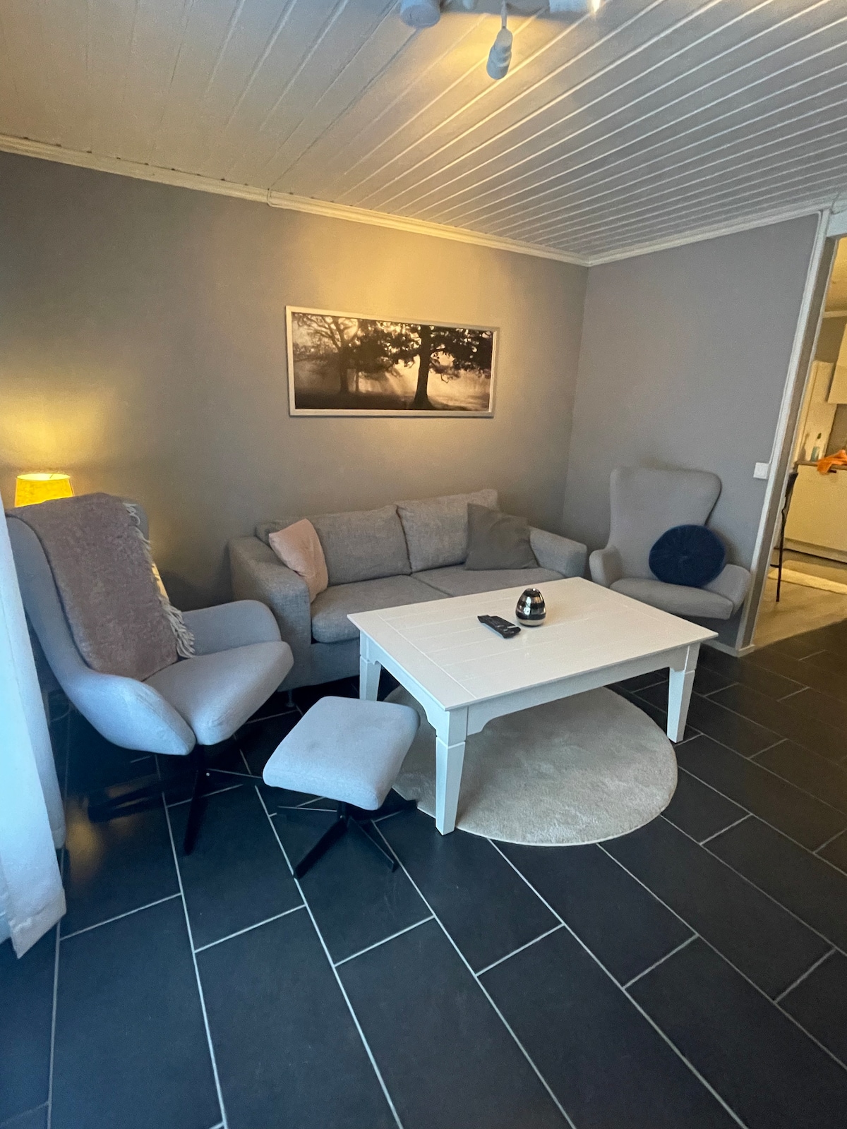 A 2019 apartment with large bathroom, bedroom and living room/kitchen solution. Private entrance from the back of the house, and access to parking on the front of the house. The rest of the house is inhabited by us, and we have three children who can produce some footsteps. Otherwise, the studio is separated from the house with a fireproof and soundproof door, which is locked with a key. TV only has the option of AirPlay, and no apps/channels