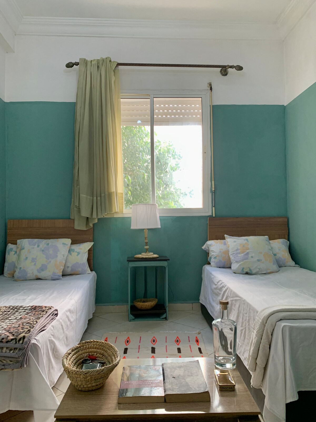 Beautiful apartment filled with natural light" in the heart of Agadir, just 10 minutes from the beach. Located on the 1st floor of a secure residence, with 2 comfortable bedrooms, a cozy living room, a fully equipped kitchen, a workspace, Wi-Fi, and IPTV. Balcony overlooking a garden—perfect for enjoying the sunrise. Less than 100m away: taxis, restaurants, currency exchange, pharmacy. Quiet and friendly neighborhood with shops and cafés open past midnight. Ideal for a peaceful stay.
