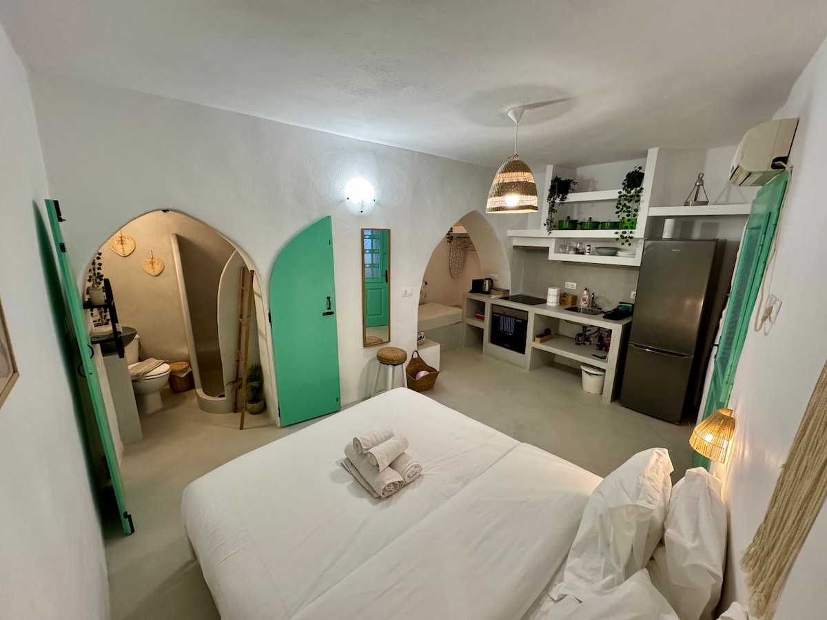 Panoramic port view apartment is fully equipped, ideally located a small complex with a private road, on a hill over the beach of Ios port. Focus on the breathtaking panoramic view of the Port, Chora and Santorini. The endless blue of the Aegean sea unfolds at your feet. Just a 3 minutes drive from Ios port and 8 min drive to Chora. We recommend you to rent a car, motorbike or atv, in order to explore all the beautiful beaches and Ios scenery. Feel free to enjoy your privacy with a great view.