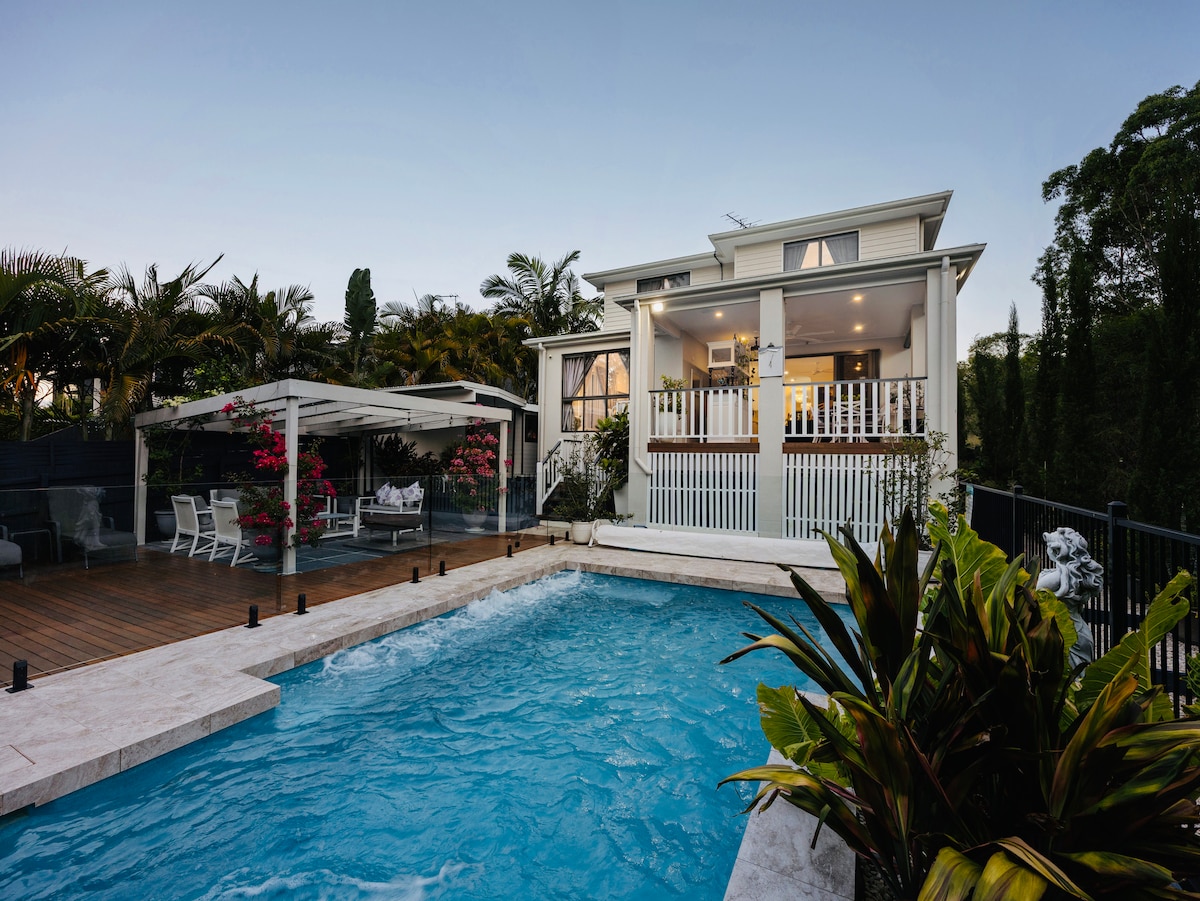 Brookfield Retreat is a large 60's inspired sanctuary for corporates, groups, families or couples wanting to relax & chill, whilst surrounded by nature in a tranquil, private location, 15 km from the Brisbane CBD. A huge house with lots of space, equipped with pool table, bar, indoor heated spa, cinema room, pool, pergola & outside entertainment area. Suitable for quiet gatherings, workshops, wellness retreats, family’s, holidays, work trips, photoshoots , teams & group accommodation.