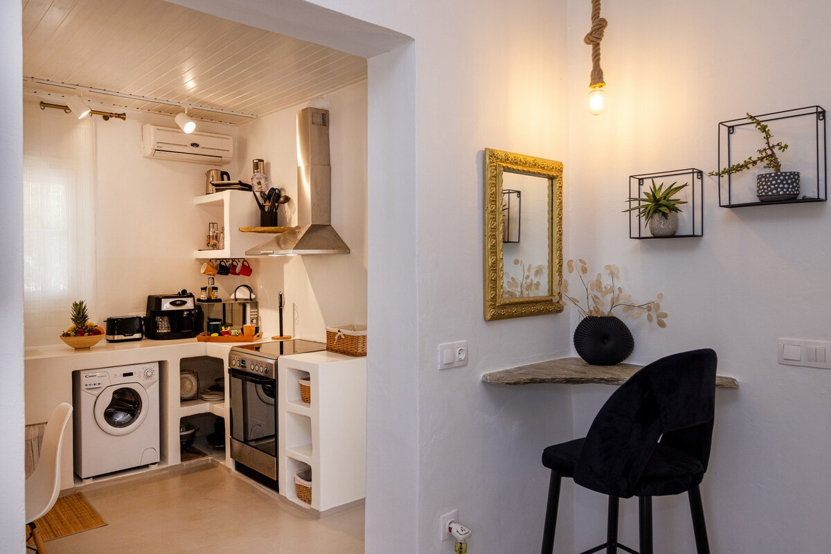 Perfectly located Cycladic house for up to four people overlooking the old port and beautiful sunsets. Fully renovated in 2021 and fully equipped with all the essential amenities, being ready to accommodate you. An ideal location to stay at the quietest neighborhood of Mykonos town and at the same time be only a few steps away from the center of it.