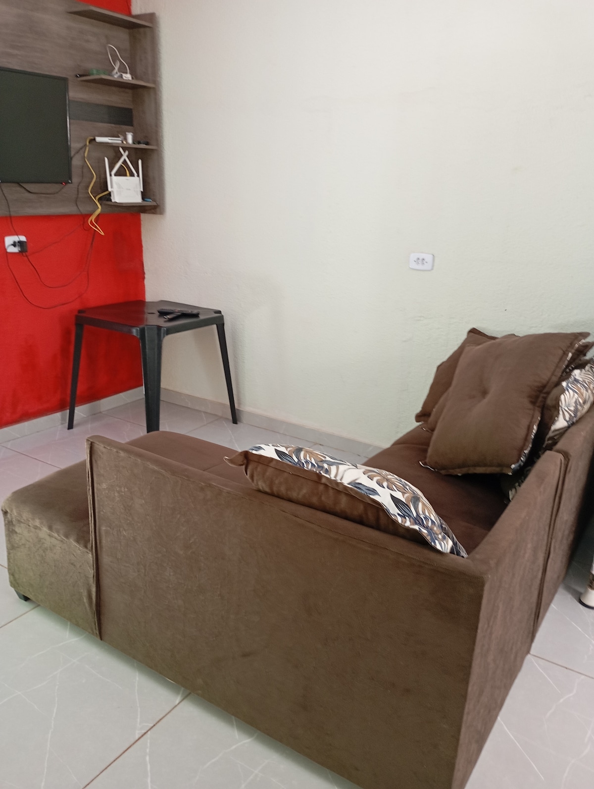 2/4 apartment, for up to 8 guests, with 1 double bedroom and an extra bed, which accommodates 3 people, 1 bedroom, with 2 single beds and 1 extra bed, living room with sofa bed for 2 people, furnished kitchen with refrigerator, stove, microwave, glasses, dishes, cutlery and gourmet balcony with barbecue and hammock.