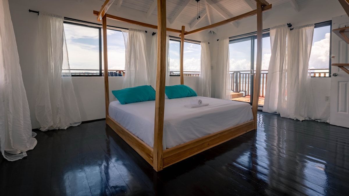 Perched over the water in Bastimentos Bay, this well-appointed four bedroom and three bath single family home combines classic Caribbean architecture with modern sensabilities. With over 2,000 sq ft of comfortably furnished spaces, there’s room enough for eight adults to spend time together - or apart - in any weather. BBQ poolside, stargaze from the hammocks, fish off the dock, walk to restaurants, or flag down a water taxi from your private boat dock for the ten minute trip to Bocastown.