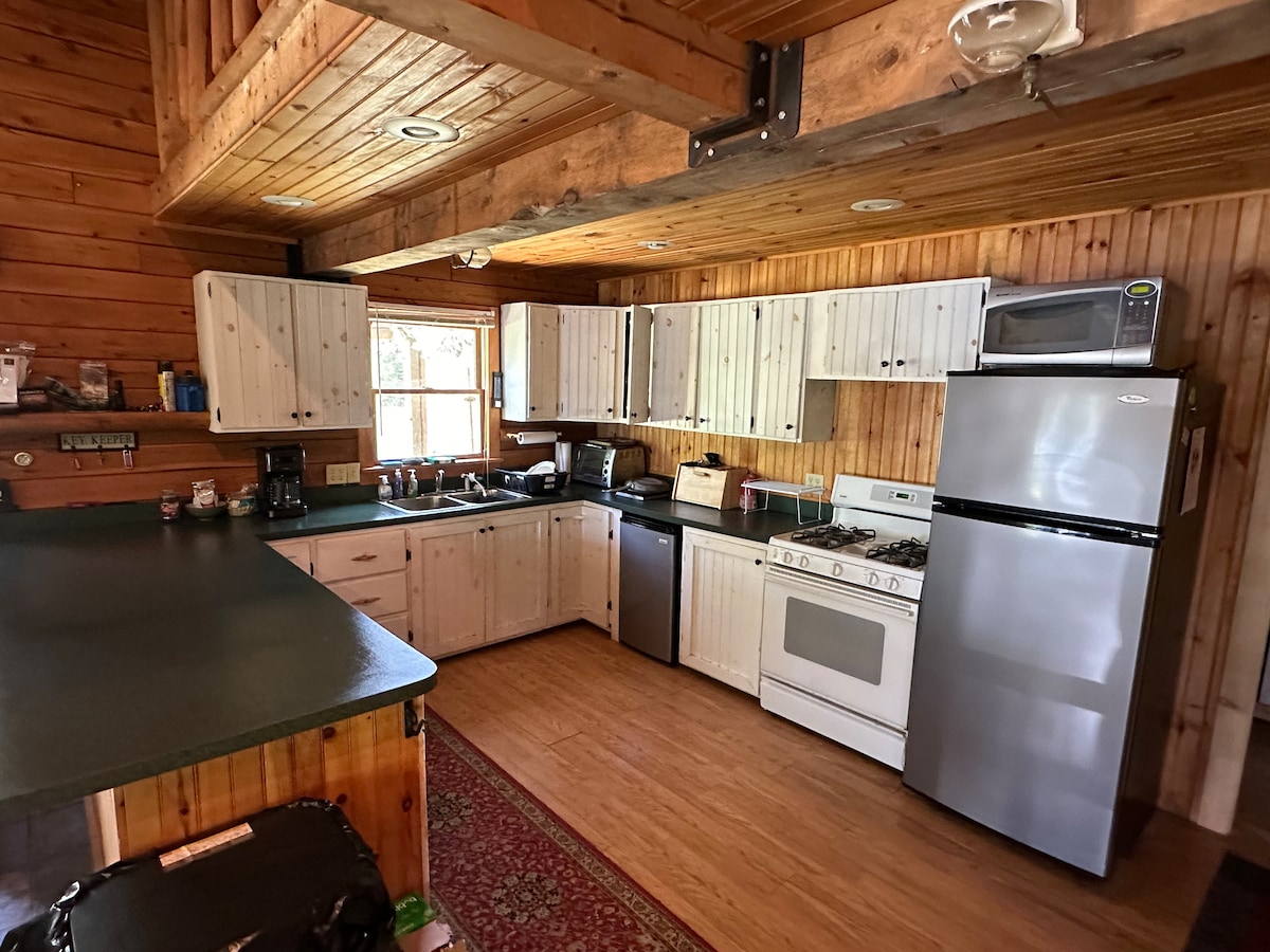 This rustic cabin has everything! Access to the lake, a complimentary canoe and gear is part of the deal. A boat slip can be arranged, there is access to ATV trails. It is also a perfect hunting cabin. There is running water, hot water, and electricity. The area is rustic, with excellent access, paved roads and nearby supplies. The cabin has a small refrigerator and a 10 gallon hot water tank as well as many small appliances.