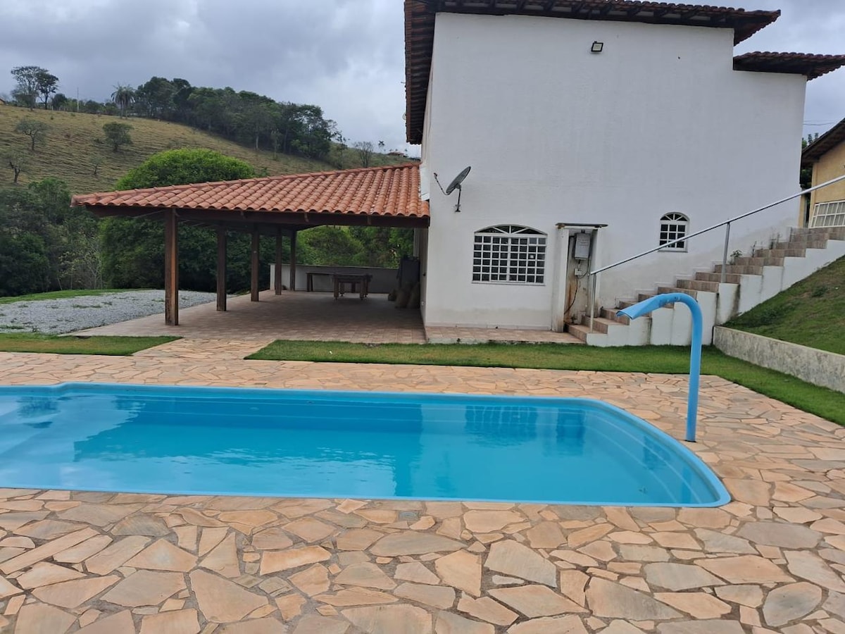 Sítio com vista de cinema , apenas a uma hora e 10 minutos de bh , com piscina e bastante espaço. São 3 camas de casal , 6 colchões de solteiro e um sofá cama