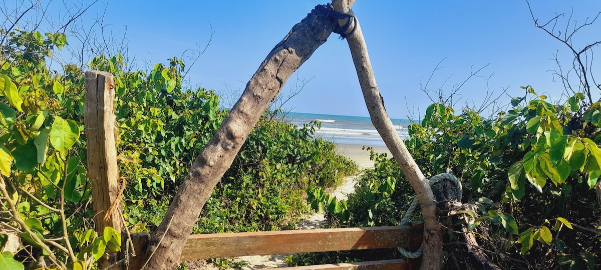 Descanse em refúgio rústico entre mar e rio