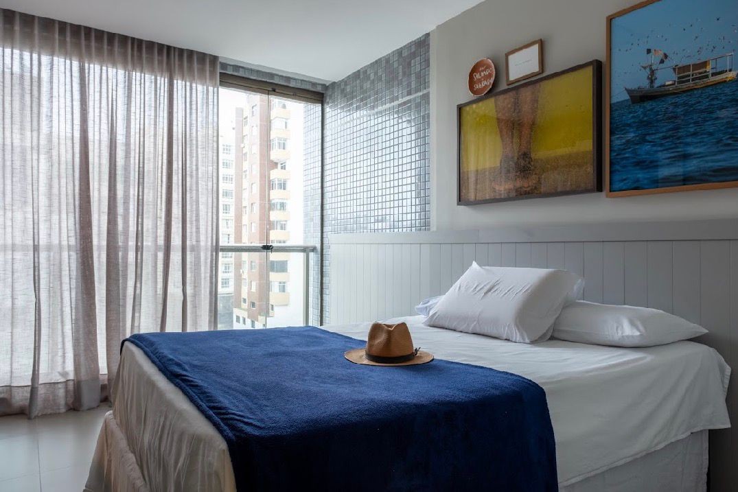 A fully renovated apartment in FAROL da BARRA, CONDOMINIO BAHIA FLAT, from which you can enjoy the great sea from our pool, the FAMOUS FAROL BEACH, seeing the electric trios, blocks, in the area in front of our condominium, which is only two minutes from the beach, just across the street, to delight in the enchanted waters of FAROL DA BARRA, we have 2 elevators, free parking, Our balcony overlooks bohemian bars, restaurants, and hotels,