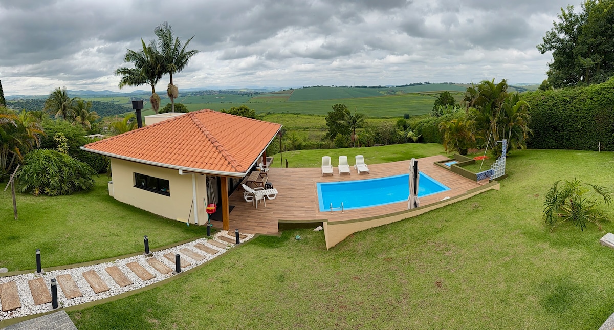 Farmhouse with cozy house with fireplace, heated pool, children's toys, gourmet space with minibar, barbecue, gas oven and stove. Fresh air!! Neighborhood on the edge of the D.Pedro Highway) near one of the largest Zoos in the State, ZOO PARK. Place for family and/or friends to enjoy peace and quiet and wake up with the birdsong. Ideal for those who want to be in contact with nature. With native forest at the bottom of the land where there is a treehouse.