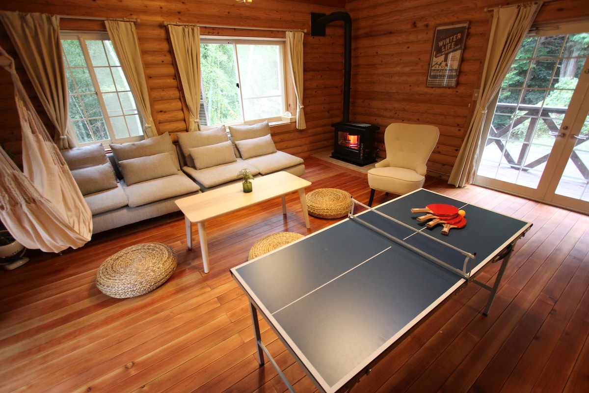 Hello! I am Riki from NAMISA, a rental villa. A villa located in a forest at an altitude of 430m, 40 minutes south by car from the Atami Pass Interchange on the Izu Skyline (toll road), overlooking the magnificent mountains of the Izu Peninsula. Based on the concept of "creating memories that will remain in the hearts of visitors", I shared ideas with my wife and daughter, renovated the space myself, and created a space that can be enjoyed. A log house with a chimney stove, a large wooden deck surrounded by bamboo forests, and a living room designed for relaxing and playing with loved ones. We hope that NAMISA will help you create memories. We look forward to your visit. * Please be sure to read the following prohibited items before making a reservation, as we are unable to accommodate requests such as late-night drinking parties. * Because it is in a natural environment, insects may appear. We are taking measures, but we cannot completely prevent it. Please understand.