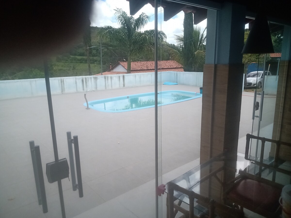 Enjoy unforgettable days in this complete place, ideal for families and groups. It accommodates up to 15 people in a large dormitory, with a swimming pool, waterfall, equipped gourmet area, brewery, refrigerator, dam with fish and leisure space for everyone. Perfect for relaxing, celebrating, and enjoying nature in comfort and privacy.
