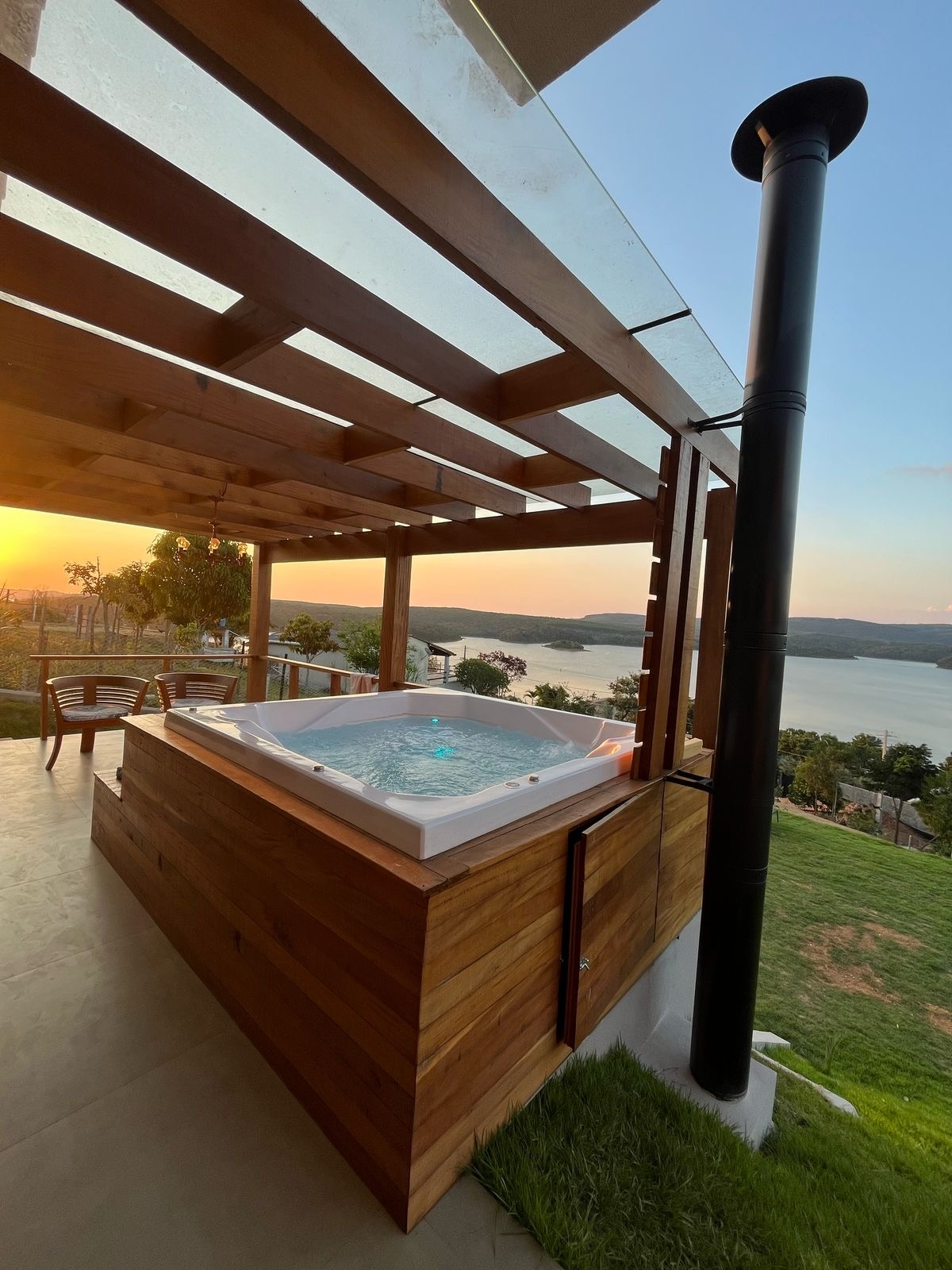 Cabin with jacuzzi and infinite view of the dam, ideal for relaxing in the midst of nature with total privacy and security. Perfect for couples, it offers a deck with stunning views, incredible sunsets and starry skies. Enjoy the birdsong and tranquility upon waking. Located in a nautical marina with restaurant and motorboat, kayak and quad bike tours just 1h30 from São Paulo, with paved access by the Dom Pedro I Highway. Wi-Fi, full kitchen, air conditioning