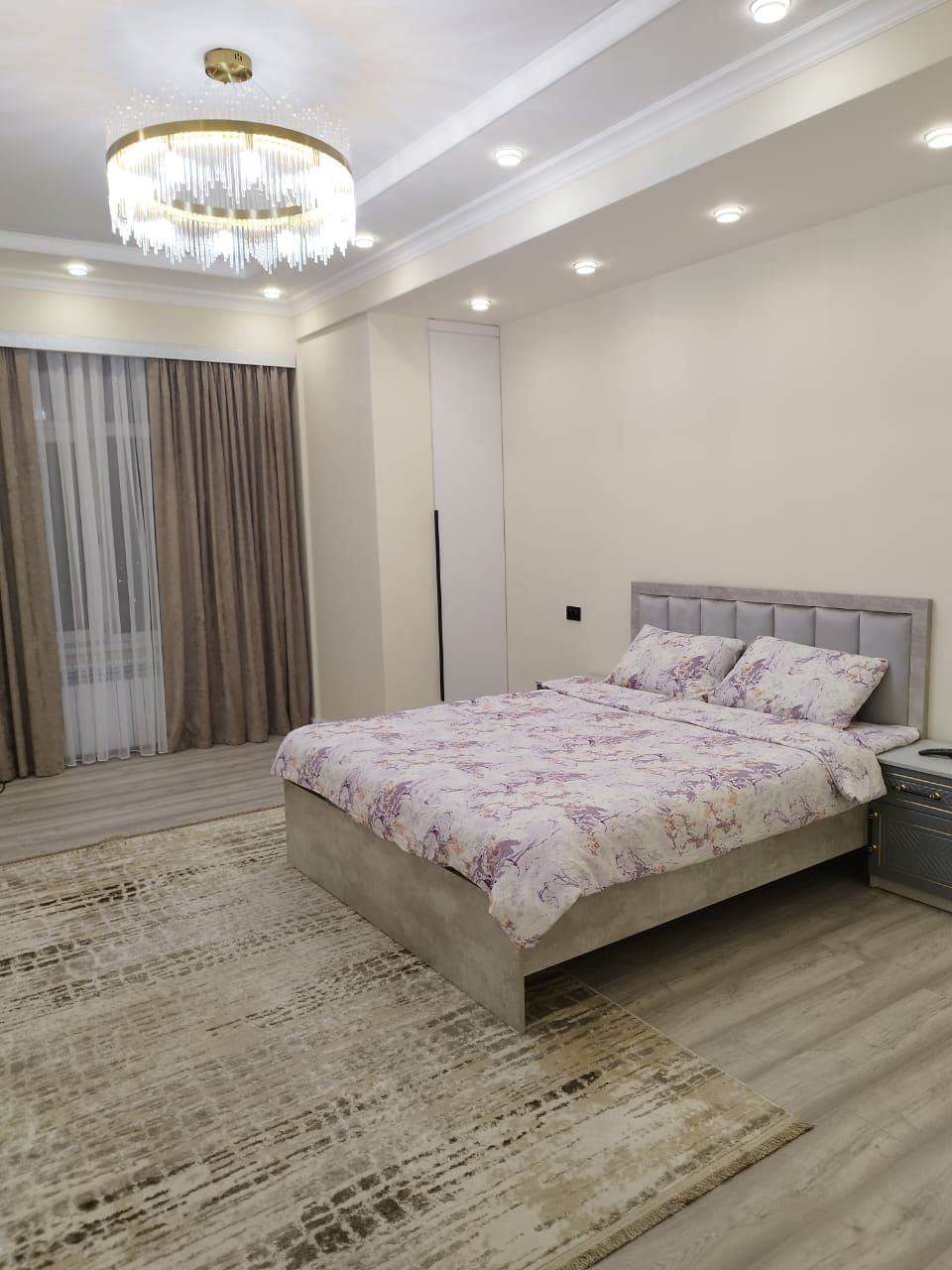 Двух комнатная квартира, с ремонтом, теплыми полами, джакузи, аквариумом, кондиционерами, 3 телевизора. Находится в спальном районе, рядом магистраль. По близости много мини-маркетов.