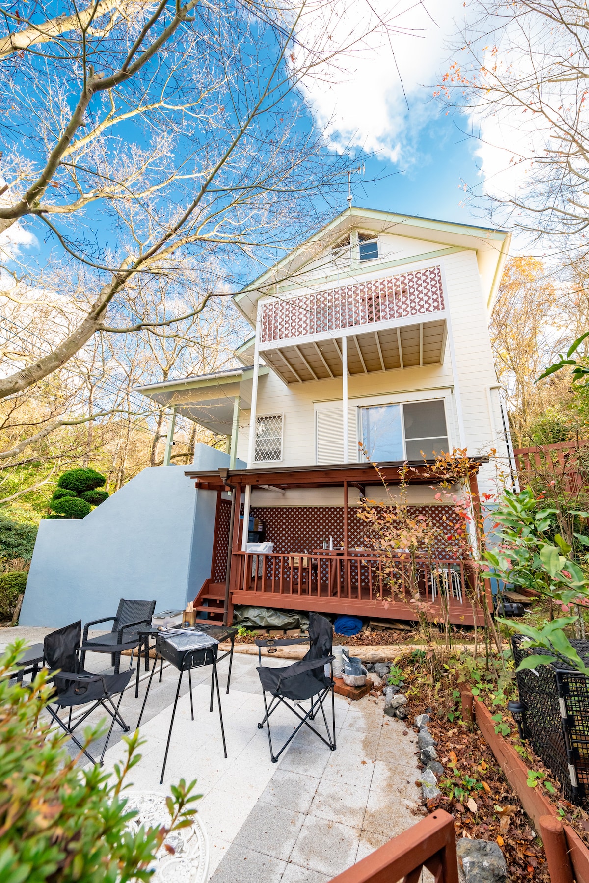 Minpaku Gororin is a private rental accommodation in Yugawara-cho, Kanagawa Prefecture. The host is a local couple who renovated a traditional house built 60 years ago. We live in the adjacent main house and will be happy to provide you with information and assistance. At this facility, you can enjoy BBQ in the garden overlooking the sea (equipment is free). Charcoal, igniters, paper plates and tongs are provided. The room is spacious. We have nostalgic games and toys for both adults and children to enjoy. Popular Atami is also nearby, and there are fireworks displays. Mishima is about 30 minutes away via Atami, so it's convenient for getting to Mt. Fuji! You can enjoy fishing and beach play on the Manazuru Peninsula, and hot springs and autumn foliage in Okuyugawara! Hatsushima, popular with young people, is also close by. There is also a freezer for those who fish in Izu. Why not make Minpaku Gororin your base and enjoy it! Guests elementary school age and younger are 30% off. It can accommodate up to 5 people! Free parking! If you are coming by train, we will pick you up at Mazuru Station. We look forward to your reservation with your family, as a couple, or with friends!