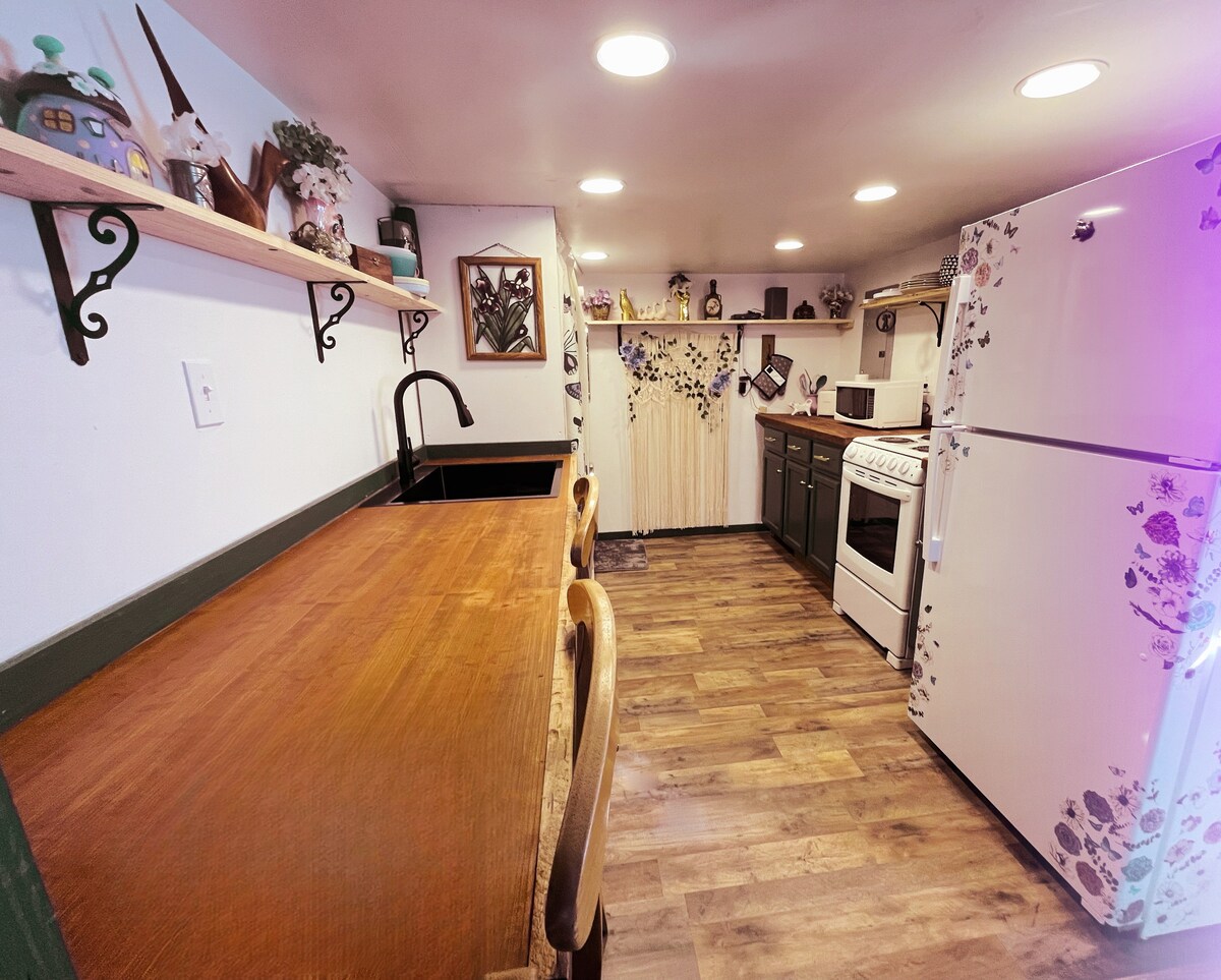 Everglow Hollow! In the heart of Lake Cumberland, this tiny house offers a unique experience for 4-6 guests. It's cozy interior, a fully equipped kitchen, wifi and a large TV for streaming. Only 10 minutes away from Dudley Boat Ramp and beach area and 8 minutes from Jabiz Landing with swimming and 15 minutes away from Wolf Creek and Lee's Ford Marina. There is a camper pad with septic and 30 AMP electric hook-up. Also a large gravel driveway where you can park your boat and toys.