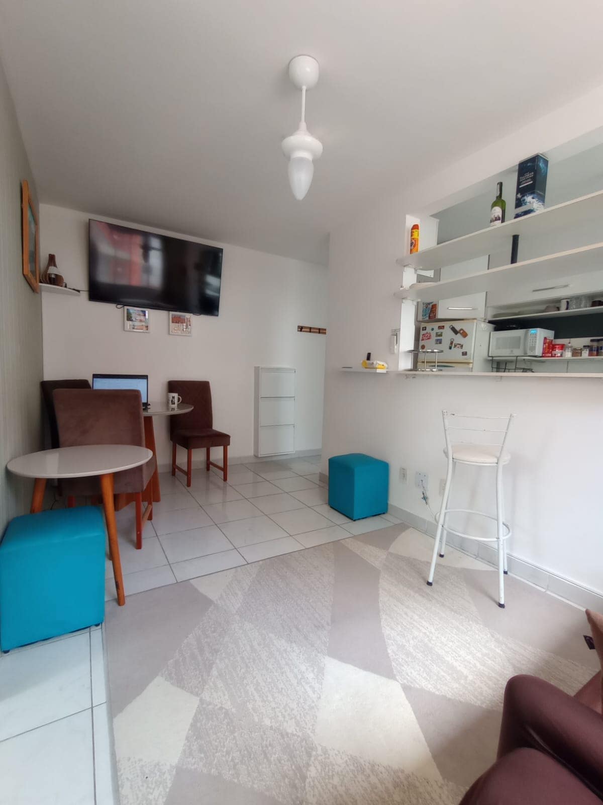 Flat Feature: .piso cold or laminated Wood .geladeira com freezer ( not minibar) Hotel standard electronic check ( record of last 60 entrances and departure ) .Smart tv in the living room and bedroom .. new split and inverter condition (very quiet) .cofre Eletronico .secador de hair .k kitchen equipped ( essential) Internet router at flat Parking, Laundry, Pool, Room Service, Gym, Apartment with kitchen, bedroom, living room and balcony