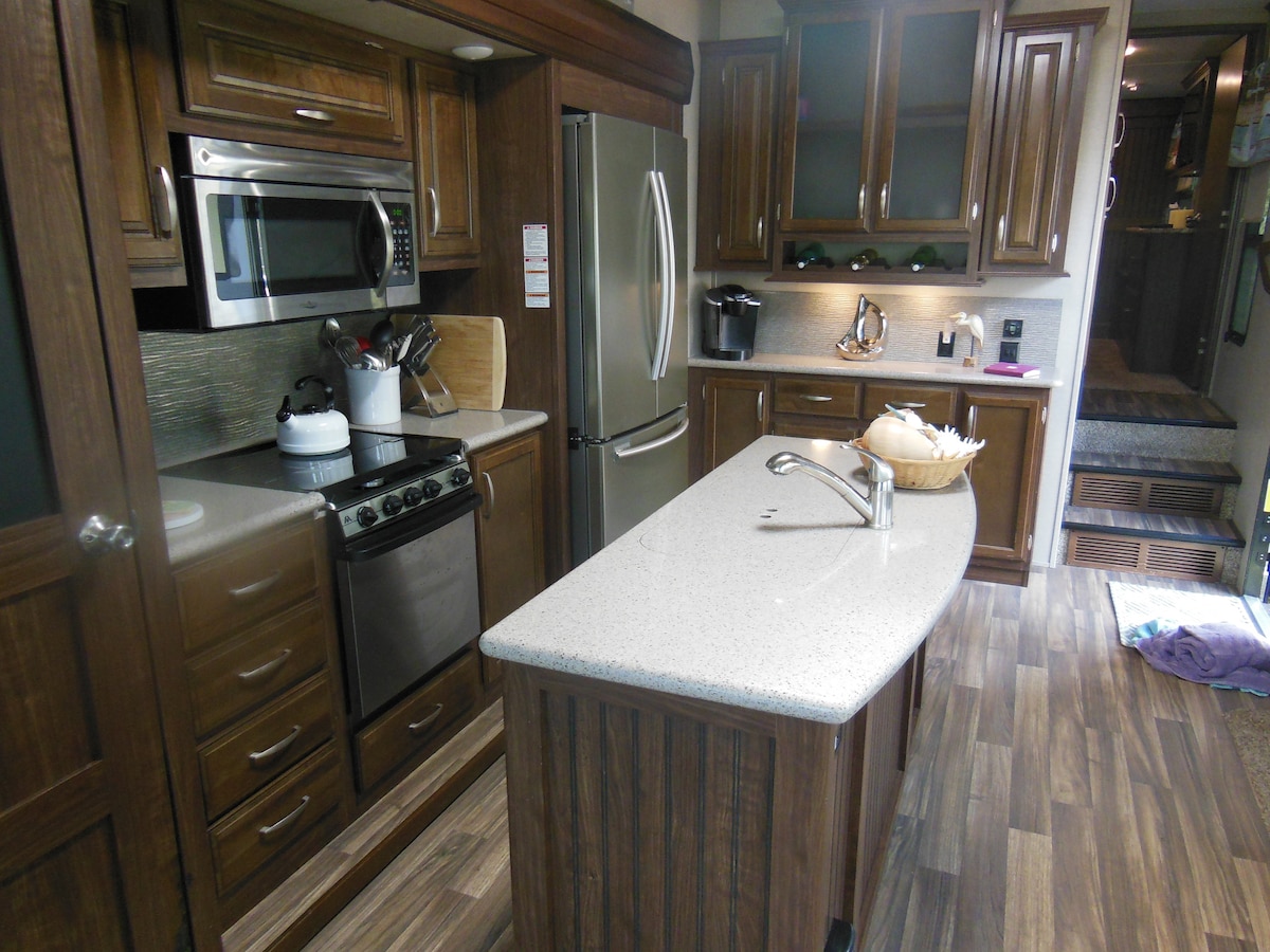 You'll love this unique and romantic escape. Designed to create an intimate setting to enhance your time together. The RV is quite large and fully equipped . Master bedroom features a cashmere topped California king bed. The property has so many amenities starting with a very large pool, lighted at night. A dock on the river to enjoy the views. Access to kayaks on premises. There’s a private clothing optional area/deck with a massage table , hot tub and loungers. We recently added a fire pit.