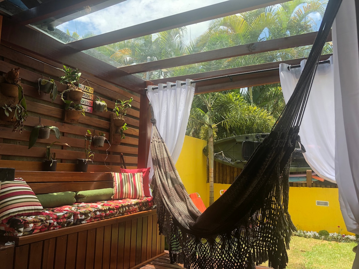 Our little house is a unique accommodation on the island. Think of your own little house surrounded by vegetation, on a stream, with everything you need to disconnect and connect with your favorite person! The little house is inside a family property, which will bring greater security to our guests It's in a great location! Just 5 minutes from downtown and the beach! Close to the best restaurants in the village and easy to access! Ask your questions! We have been a super host for 5 years, we are at your disposal