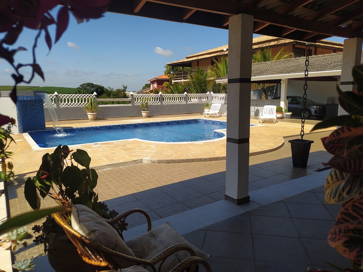 Balcony house with panoramic view of a large area of permanent environmental preservation area. Gated community with 24-hour security. Equipped kitchen. Living room with 3 environments with fireplace and social bathroom, 3 large en-suites. Barbecue with wood stove, pizza oven and 2 refrigerators. Fans. LED TV with Sky package. DVD player, DVD, Wi-Fi, Games. Swimming pool with whirlpool. With solar heating. Led lighting. Lake 50 meters from the property. Fenced space for pets.