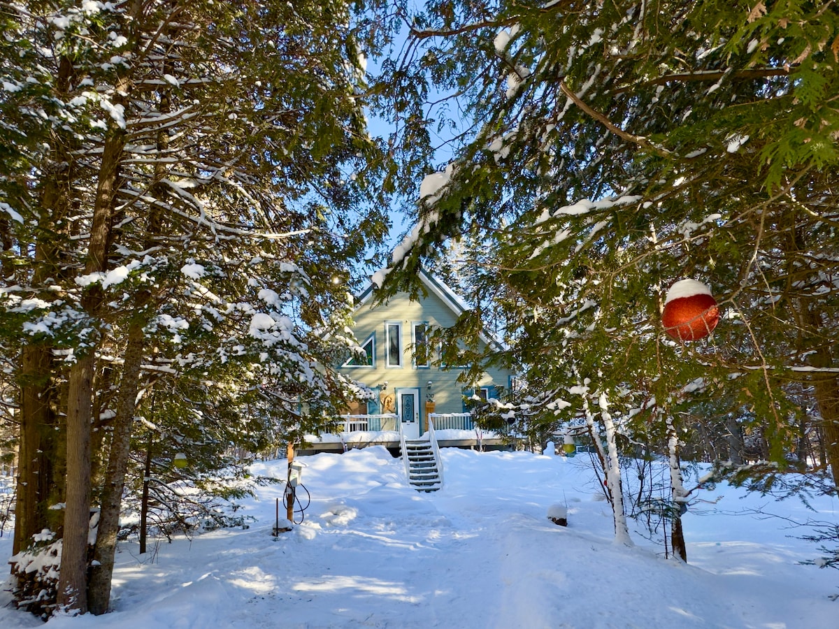 *$* WINTER PROMOTION *$* For a weekend reservation (Fri. & Sat.) the 3rd night on Sunday is $90.00!. Monumental open concept, in the heart of nature. Access to trails directly behind the house. Wood stove, large modern bathroom, one bedroom + sofa bed. Another sofa bed in the living room. Ideal chalet for a couple with children or two couples. Wild birds, turkey, and deer lovers welcome! Wifi and EV charger included. Dogs Welcome! CITQ : #308038
