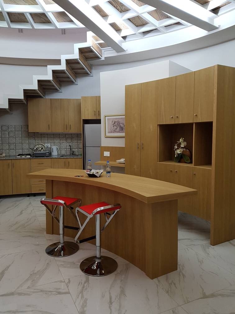 One of two totally independent apartments located on the ground floor of a villa in a residential area of Bejjeh village in Jbail district, Mount Lebanon, 55 km north of Beirut. Each apartment includes a fully equipped bedroom, living room, kitchen and bathroom, and can accommodate up to 4 Queen beds. In addition, huge pool, kids pool, gardens, BBQ, gas fryer, saj, bar, lobby & pergola, parking, ping-pong, baby foot, Dama and Chess, Backgammon tables, meeting room. All hotel services provided.