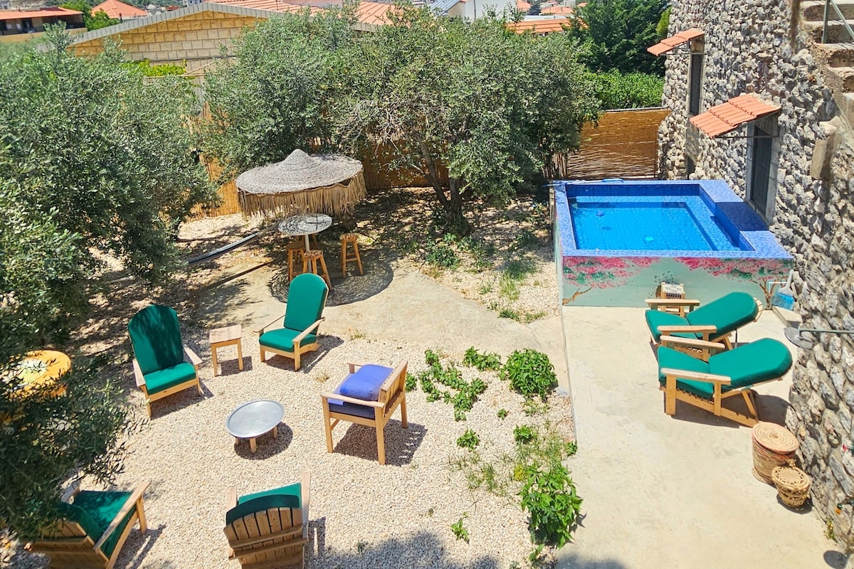 Stay in a charming Lebanese guesthouse surrounded by olive and pine trees. Features include a private pool, jacuzzi master room, BBQ terrace, firepit, and fully equipped kitchen. Only minutes from Batroun, ideal for a peaceful and scenic getaway.