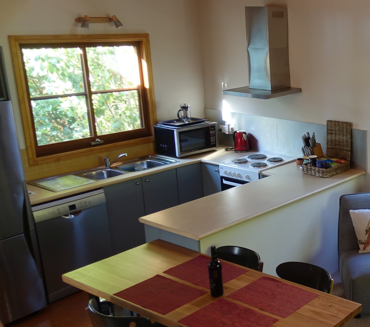 Experience beauty, calm and peace in this beautifully styled, luxurious cottage for two adults. Unwind in front of the crackling wood fire with a glass of wine or a hot cuppa. Relax in the soaker bath and fall asleep at night in the luxurious King sized bed with its snowy white linen. Wake up to spectacular mountain and valley views while you enjoy your breakfast looking out the huge picture windows. Say hello to the resident wildlife including kangaroos and wood ducks and just 'be'.