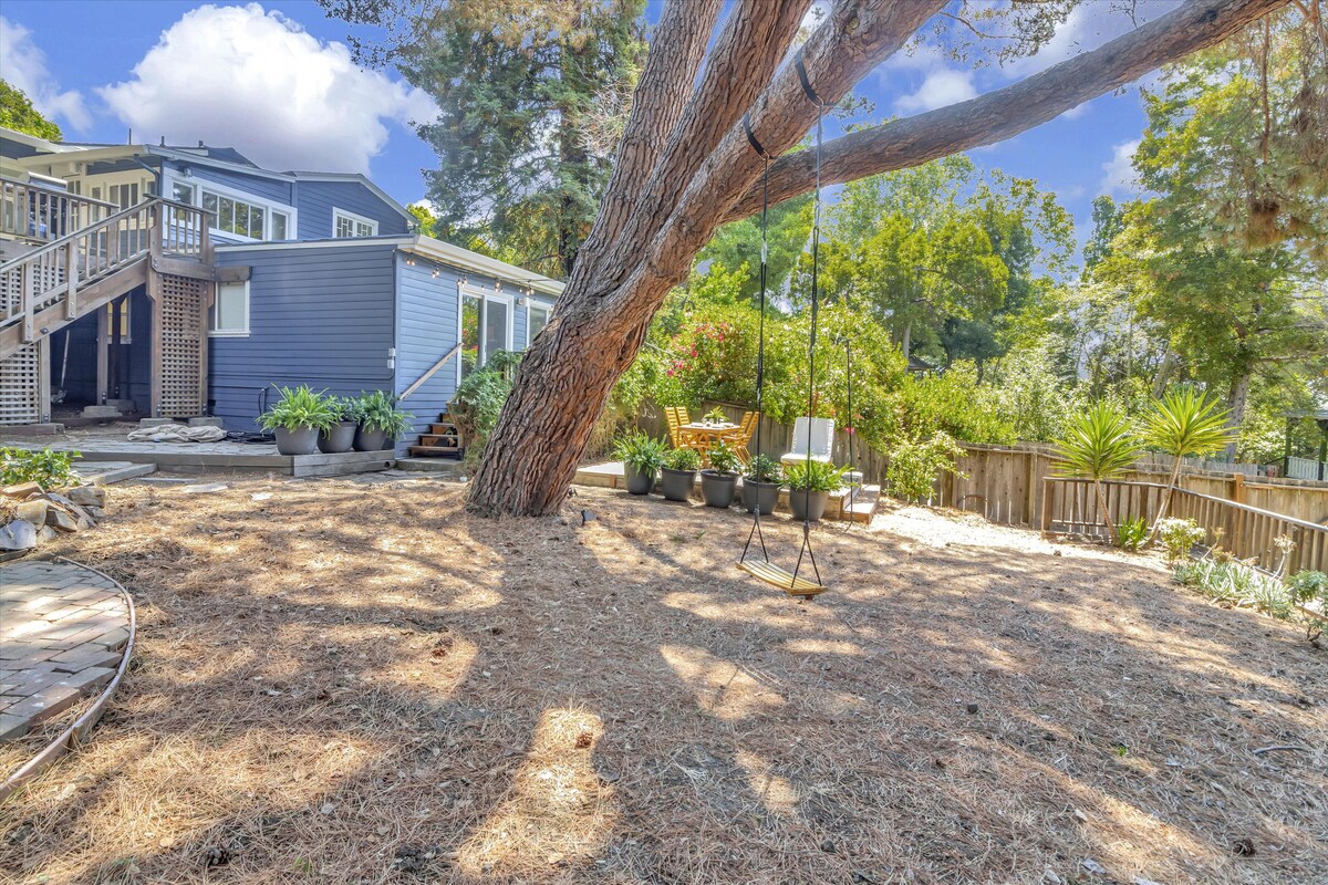 Escape to this cozy in-law studio in the Oakland Hills. Perched on a steep hill, this lower-level retreat offers a private entrance and expansive outdoor deck space. Perfect for solo travelers or couples with a child. Enjoy peaceful forest views amongst towering redwoods. Wake up to chirping birds. Unwind with a book, a drink or movie on Roku TV. Just minutes from Montclair Village, Redwood Regional Park and Joaquin Miller Park, enjoy easy access to Oakland, Berkeley, and San Francisco.