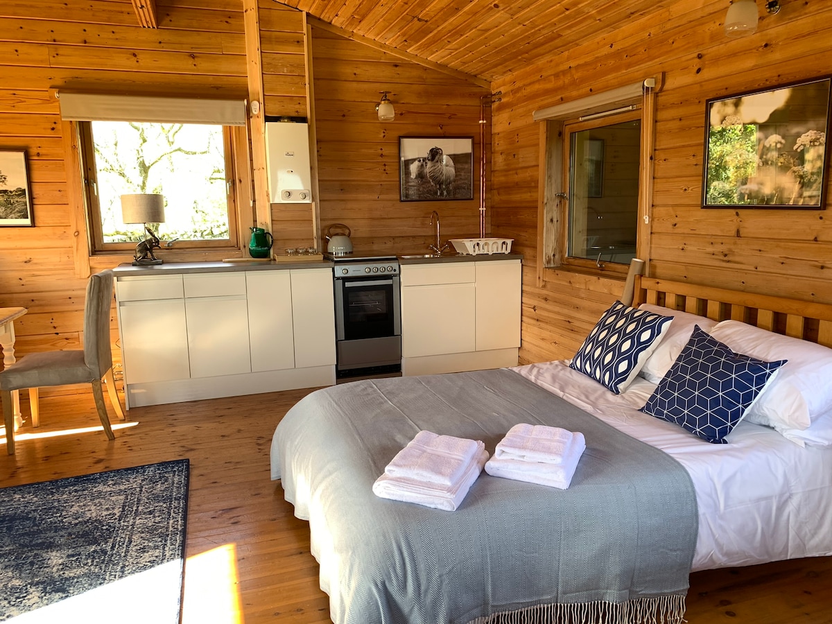 Our chalet is in our large, well managed garden. While it is near our house and we are happy to chat, we always respect peoples privacy. This is a very peaceful place where you can sit outside and watch the flames of the fire pit at night or stay in and have a cosy evening. Our neighbours are all of the four legged variety so some countryside noises are to be expected but the cows love to come and greet you at the wall. Parking space in garden