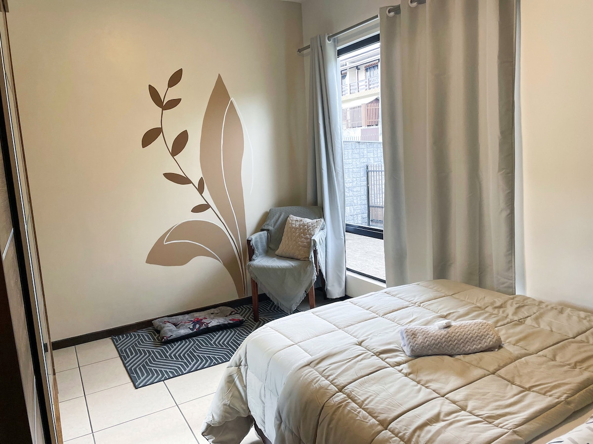 Ótima suíte completa no piso superior, com cama de casal, lavabo exclusivo para uso dos hóspedes. Acomoda duas pessoas. Os hóspedes têm acesso a suíte e à área de lazer, incluindo churrasqueira com pia e fogão, uma rede para descanso, sofá, mesa e lavabo. Ficam disponíveis também louças para a comodidade dos hóspedes caso queiram utilizar na área de lazer. A lavanderia também fica disponível na parte inferior do imóvel caso haja necessidade.
