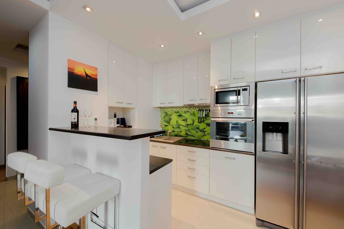 ✈Two bedroom apartment (3beds) with a private garden, lounge area on the terrace and an underground parking. ✈Fully equipped and modern with African decor. 5min walk to Medicover Hospital & to the Temple of Divine Providence 20min to the Wilanow Palace and Gardens. ☀Enjoy fast, stable WIFI & workplace for home office. We have SELF CHECK-IN. Paid parking upon availability (RESERVATION REQUIRED). The apartment is thoroughly CLEANED, SANITIZED & OZONIZED after every guest.