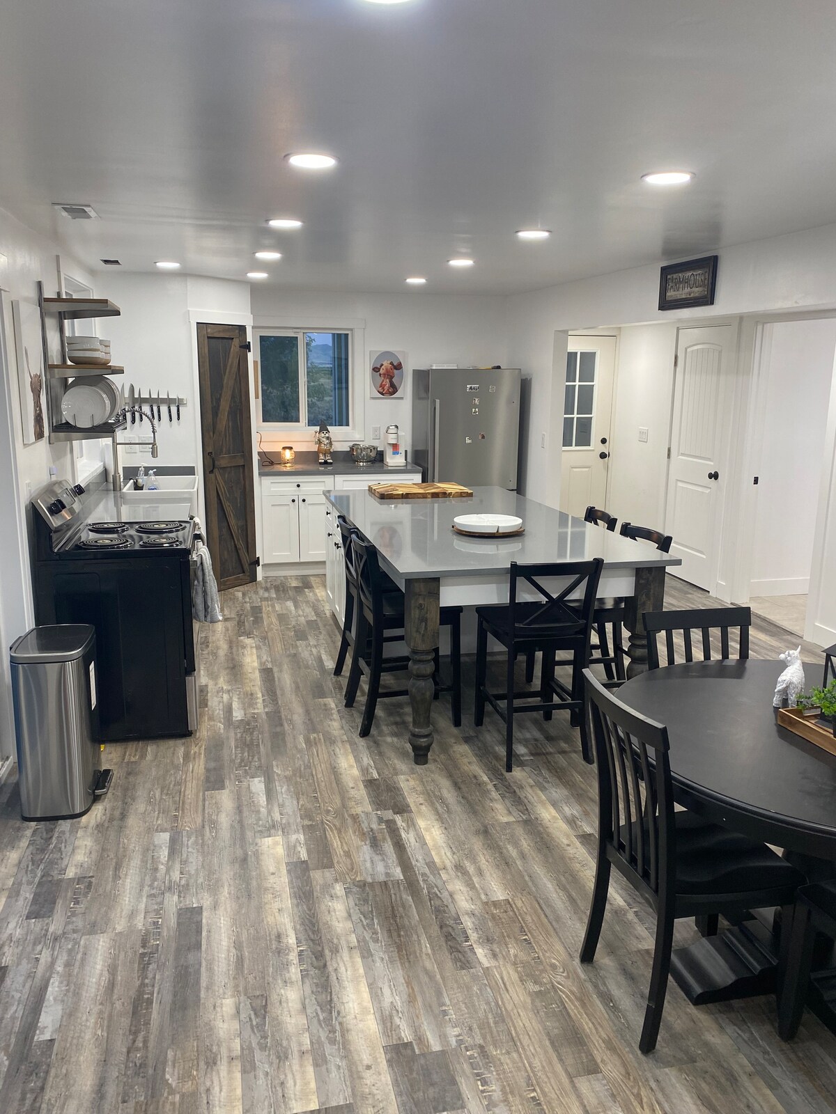 Enjoy a beautiful, newly built residence, perched right on the banks of a hidden reservoir in Delta, Utah. It features an open floor plan with high ceilings and an abundance of natural light. Accommodating up to twenty-four guests, this residence seamlessly blends modern decor and tasteful furnishings, creating a tranquil and well-organized ambiance. Step outside to savor the expansive outdoor patio, second-story balcony and manicured lawn, sprawling across a generous half-acre of land.