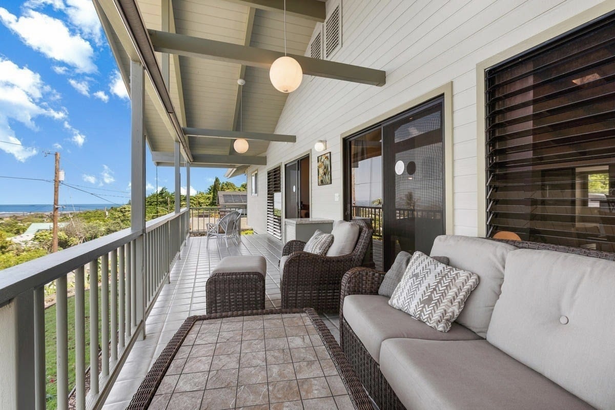 Introducing a private oasis of comfort and charm, our newly renovated tiny house. This simple retreat is a testament to minimalist luxury and offers a convenient escape near Kona International Airport and downtown Kailua Kona. The exterior of the tiny house is a harmonious blend of rustic charm and simple design, featuring a quaint porch, perfect for sipping your morning coffee or working on the computer while gazing at the pacific ocean.