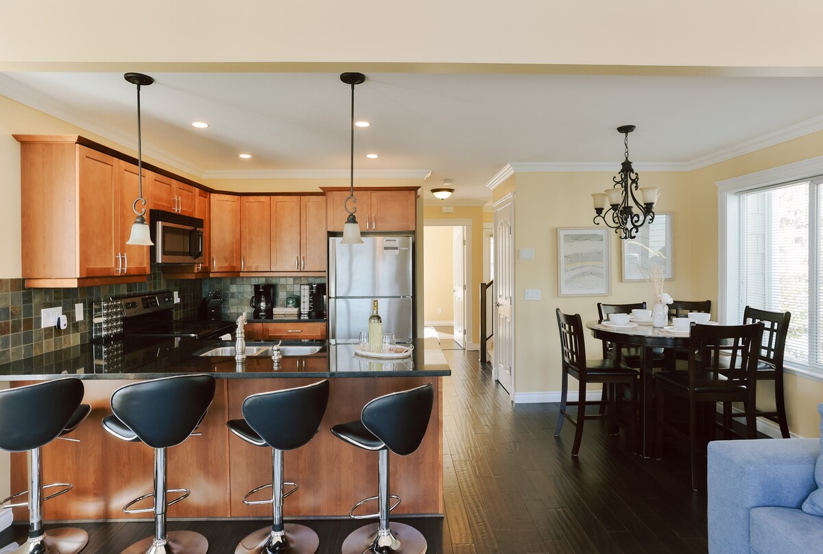 Mountain View Home Surrounded by Beautiful Orchards ✔ 3 Bedrooms. Sleeps Up to 5 Guests. Great for Families/Professionals/Friends ✔ 1500 sqft Private Home ✔ HUGE 500 sqft Outdoor Living Space w/Fire Table ✔ Queen Bed in Master w/ Stunning Views & Ensuite ✔ Fast WiFi-Work Remotely ✔ 11' Great Rm ceiling ✔ 59" Great Rm Smart TV ✔ Fireplace & A/C ✔ In-Suite Laundry ✔ Free Parking for 2 Cars ✔ 5 Min Away From Airport ✔ 25-day stays available ✔ NO PETS Weather update April 2026: Sunny!