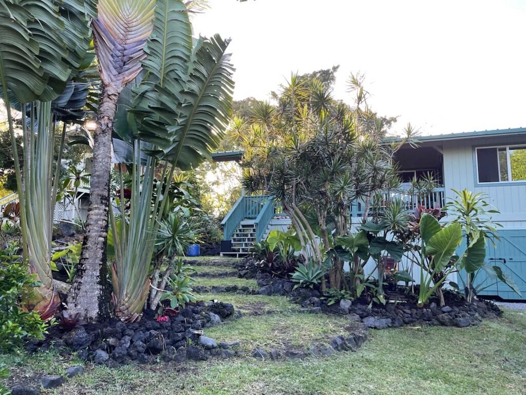 Licensed vacation rental on small banana farm 1 mi. from Kehena black sand beach, one of the least developed populated coasts in Hawaii. King bed, AC, full kitchen, screened lanai, outdoor shower & Jacuzzi bathtub/shower. Nearby viewing of the 2018 lava flow, swimming, snorkeling, hiking. Located in rural Kalapana Seaview neighborhood. Nearest store 10 mins, town with services is Pahoa, 20 mins away. Hilo, 45-60 minutes away. Volcano Park 1 hour. All of island accessible for day trips.