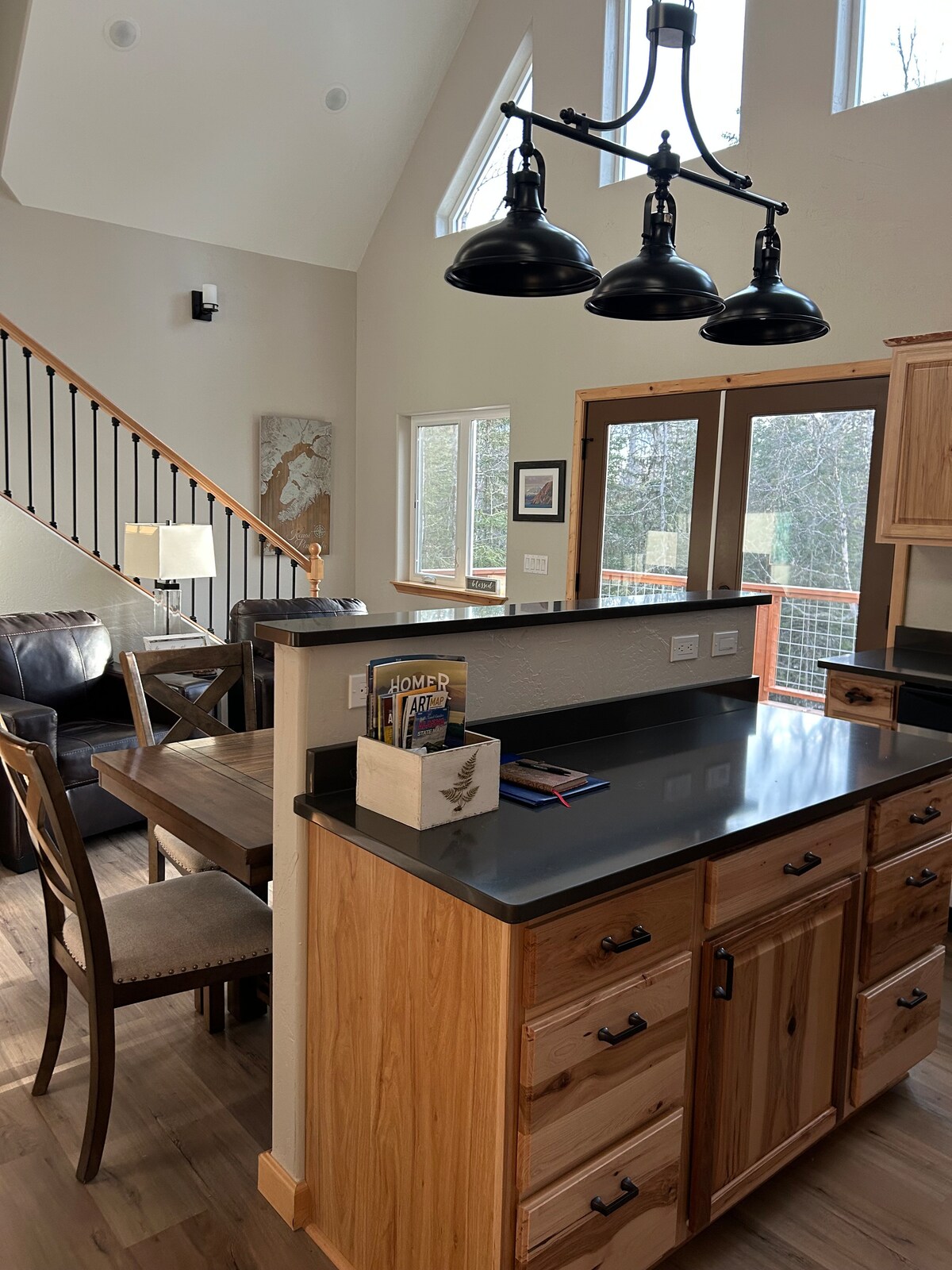 Built in 2021 with 2 private units. This listing is for the stunning upper unit; 2 BRs (K & 2TwinXLs), 2 full baths, fully furnished. The 1st floor boasts a sliding barn door entry, a fully outfitted kitchen, dining area and cozy sitting area with a lofted ceiling, fan and laundry facility. A comfy loft sitting area completes the home. An outdoor deck overlooks the wooded property. Just minutes from downtown Soldotna & Kenai. The Lower Unit with 1BR is called Birch Bend Lower-Airbnb #54211603.