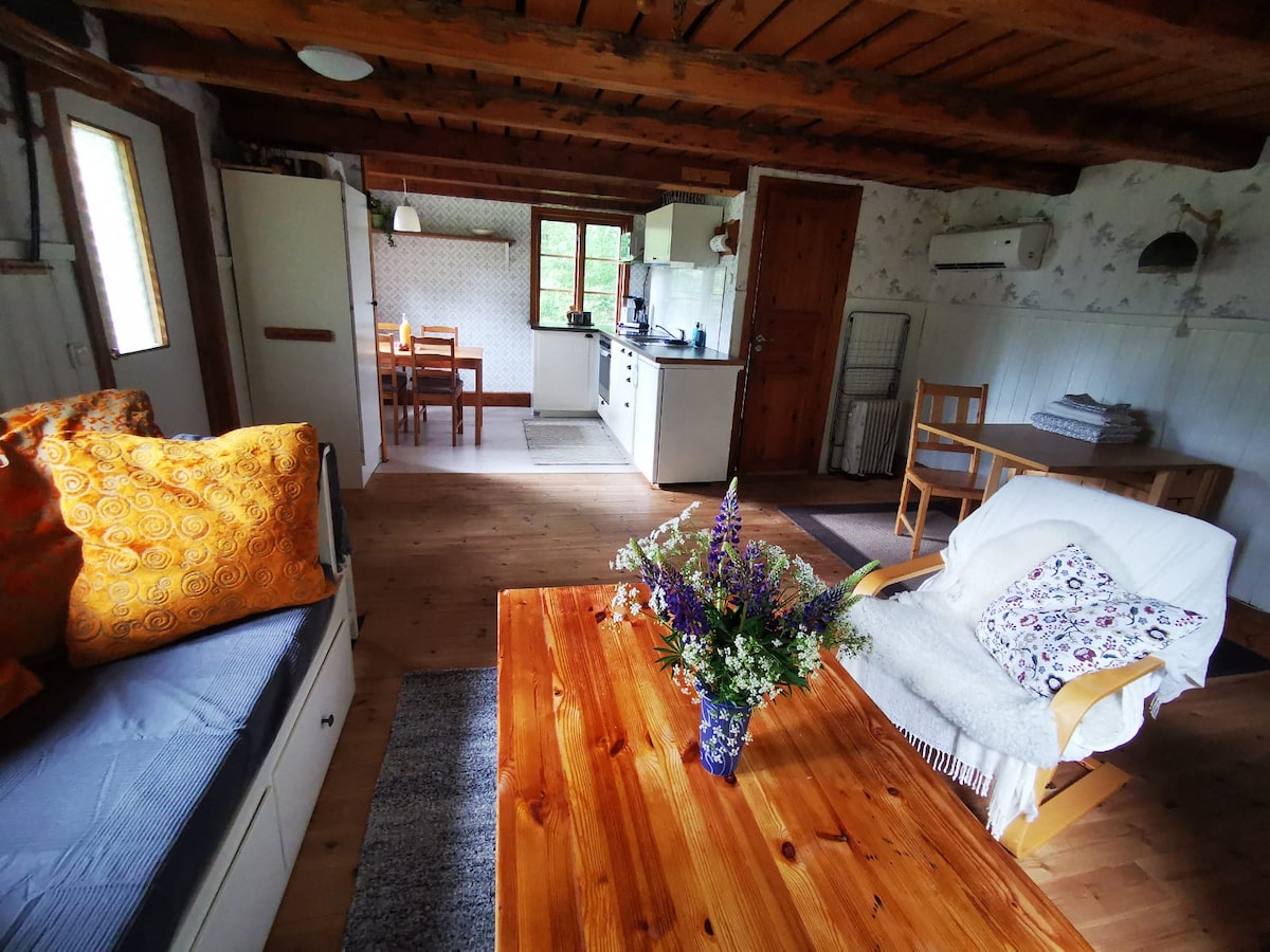 Wonderful, old swedish cottage with big garden in a small scale farm with chickens, pigs and sheep. A countryside dream, fully equiped and new renovated kitchen and bathroom. Access too wood fired Sauna in the garden.