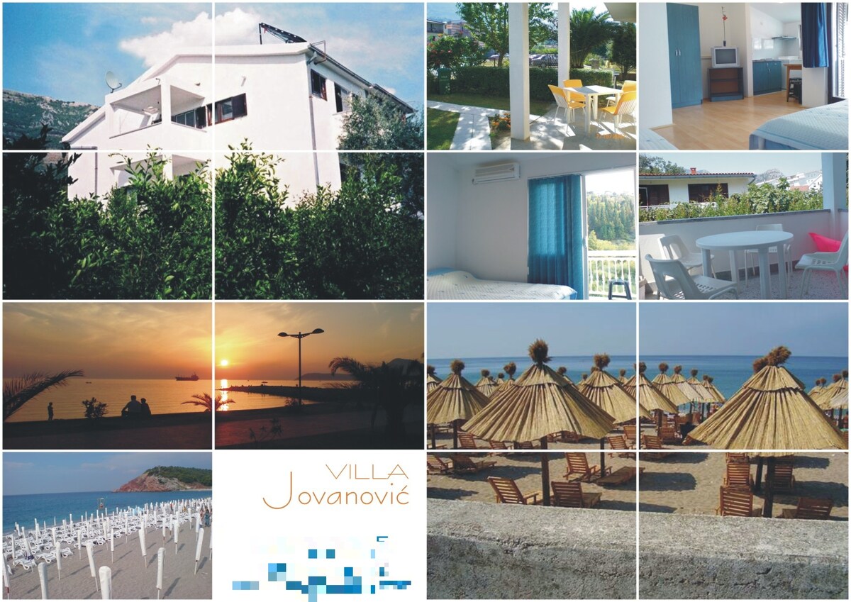 Vila Jovana - is situated in the prettiest part of Sutomore, between main town beach and several eco beaches. While ensuring discretion, quietness and no disturbances from the city and traffic noise, Vila Jovana, with their spacious and lovely gardens allow for complete relaxation and enjoying your stay on the coast. Zbog nastale situacije, efekata Covid 19, svim gostima nudimo besplatan transfer do objekta u Crnoj Gori, vece mjere higjene tokom boravka, kao i min 1 noc prazan apartman i