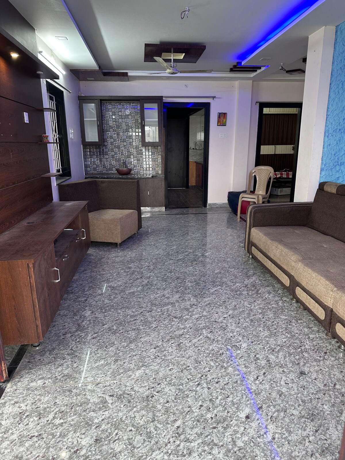 Top Floor Sanctuary: Escape to uninterrupted peace! This spacious, top floor haven boasts a private top-floor suite with 2 large rooms. Ideal for families or groups, it offers 4 comfy beds & a squeaky clean bathroom. Enjoy AC, pristine furniture, and ultimate convenience - Groceries are right downstairs, and for entertainment or travel needs, the Inox theatre and the Railway station are just a 5-minute walk away. Relax & respect the space (newly built!).