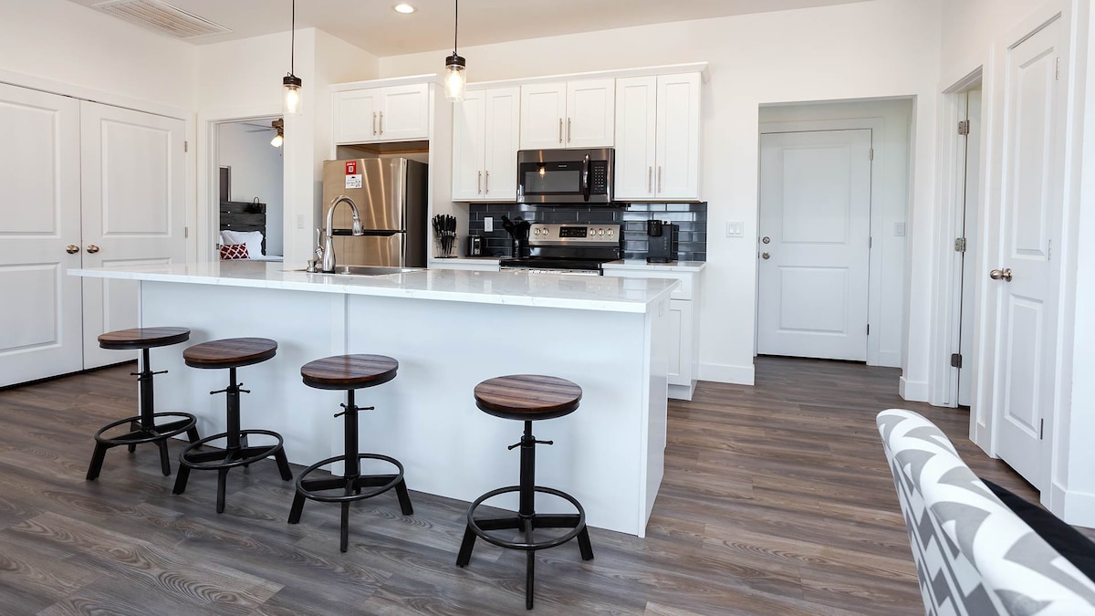 Lake Powell is open and will stay open! The Stateline launch ramp is fully operational and the lake offers excellent site seeing and recreation at all water levels. We're at the south end of the lake with 400' of water at the dam. The Highlander offers breathtaking open-sky desert views, dual primary bedrooms, hotel-quality linens, and a fully stocked kitchen for an unforgettable escape. Minutes from Antelope Canyon, Lake Powell, and Horseshoe Bend.