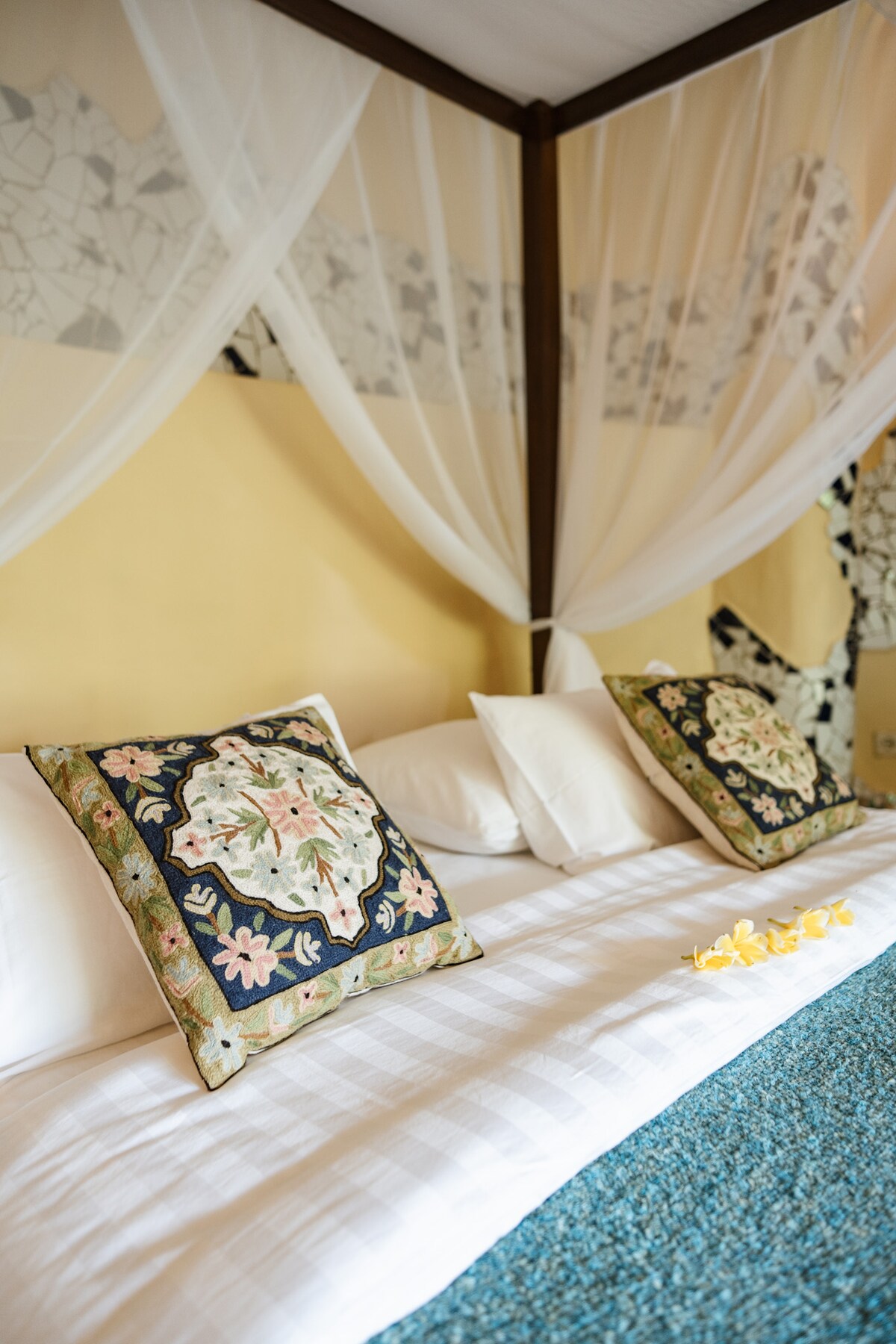 Unique Stay in the North With a total of 2 buildings, 1 shared pool and restaurant area this boutique stay has 7 luxury designed bedrooms . Four of them are 70 sqm Suite rooms and composed the main Joglo and has a shared living room. Two rooms are looking the sea, sunrise and sunset view and 2 other rooms looking to Mont Agung. In the second building you will find a restaurant in the first floor and 3 50 sqm deluxe room with sea view on the second floor, a private bathroom and terrace.