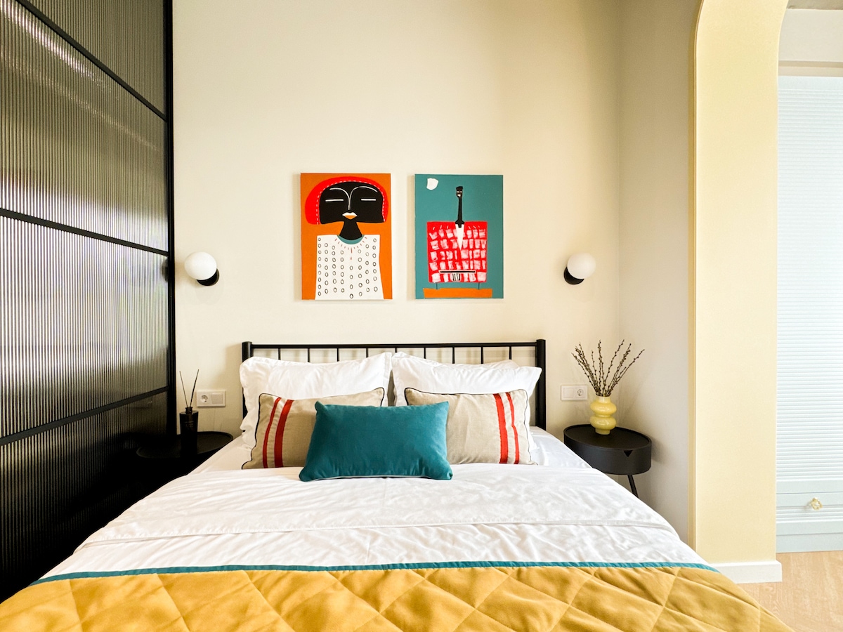 Stay with your family in the very center, close to the sights with access to the entire infrastructure of the city from the metro, bus to scooter. A stylish, modern design studio of 33 square meters is ready to offer you the comfort of a mattress with 512 independent springs, a sofa that folds into a comfortable sleeping place and an armchair-bed. Unique design, thoughtful space - everything is created for your comfort!