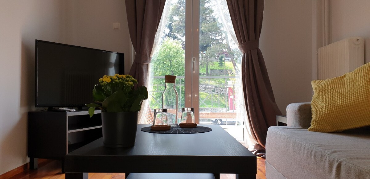 A beautiful studio is waiting to host you in Ano Neochoropoulo, Ioannina. Airy, sunny and cool, with a balcony overlooking a lush garden and mountain views. It is located right next to the University Hospital and the University, so much so that access is also on foot. For the city center, there are frequent bus routes from the University. The area is in nature, calm and conducive to relaxation. The apartment is autonomous with its own entrance.