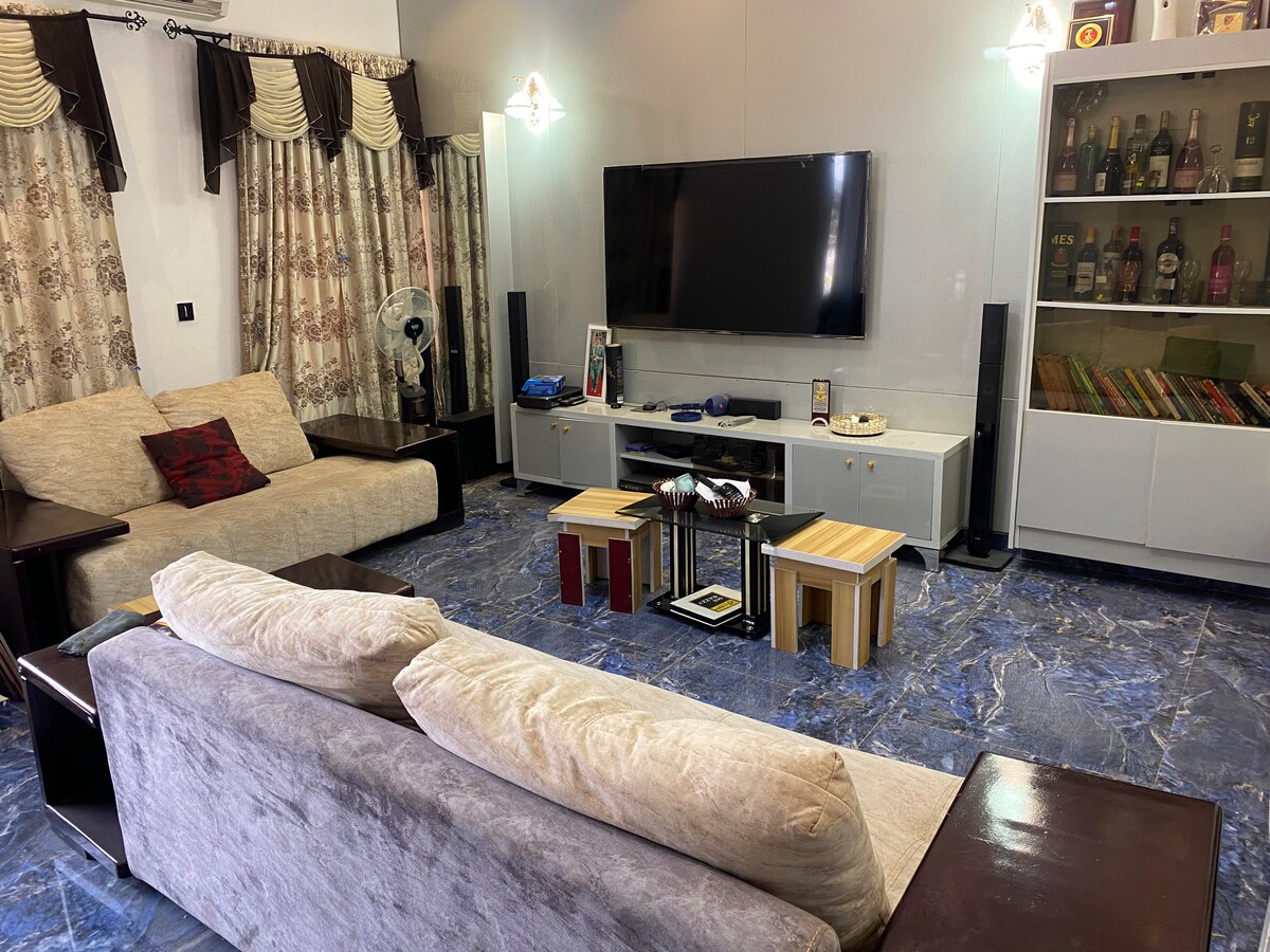 Discover comfortable and standard accommodation located along Abuja- Keffi Expressway , Nassarawa state. This residence features a comfortable living room with a LED TV and royal chairs, luxury kitchen, a pleasant bedroom with LED TV, and a standard bathroom.