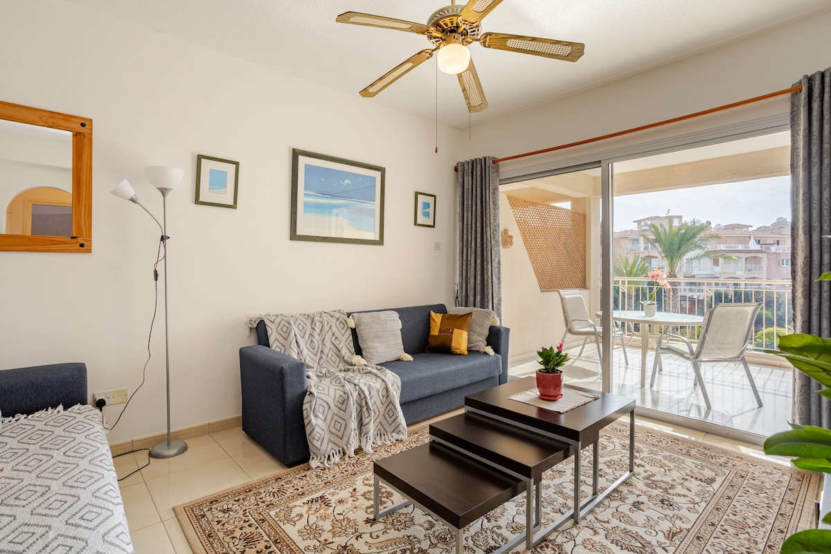Stylish studio apartment set in tourist area of Paphos. Only 5-7 minutes away from the sandy beach SODAP. Modern flat, fully furnished with brand new furniture with a unique sense of style and attention to details. This place is suitable for any solo-traveler, couples or family. Our cozy interior will make your stay feel like home. You can use tennis court and swimming pool free of charge in Paphos Gardens Hotel. Free WiFi at the apartment and at the swimming pool