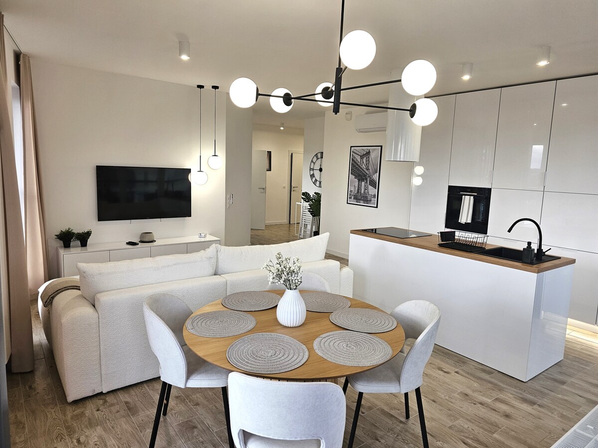 Luxury apartment in Sokolska Towers – 2 rooms, 45 m², balcony overlooking the panorama of Katowice. Fully equipped: dishwasher, oven, microwave, fridge, washing machine, high-speed internet, air conditioning. The building has a 24/7 reception, gym, sauna, children's playroom and observation deck. City center – 3 minutes to Spodek and NOSPR, 5 minutes to the station. Comfort, style and location.