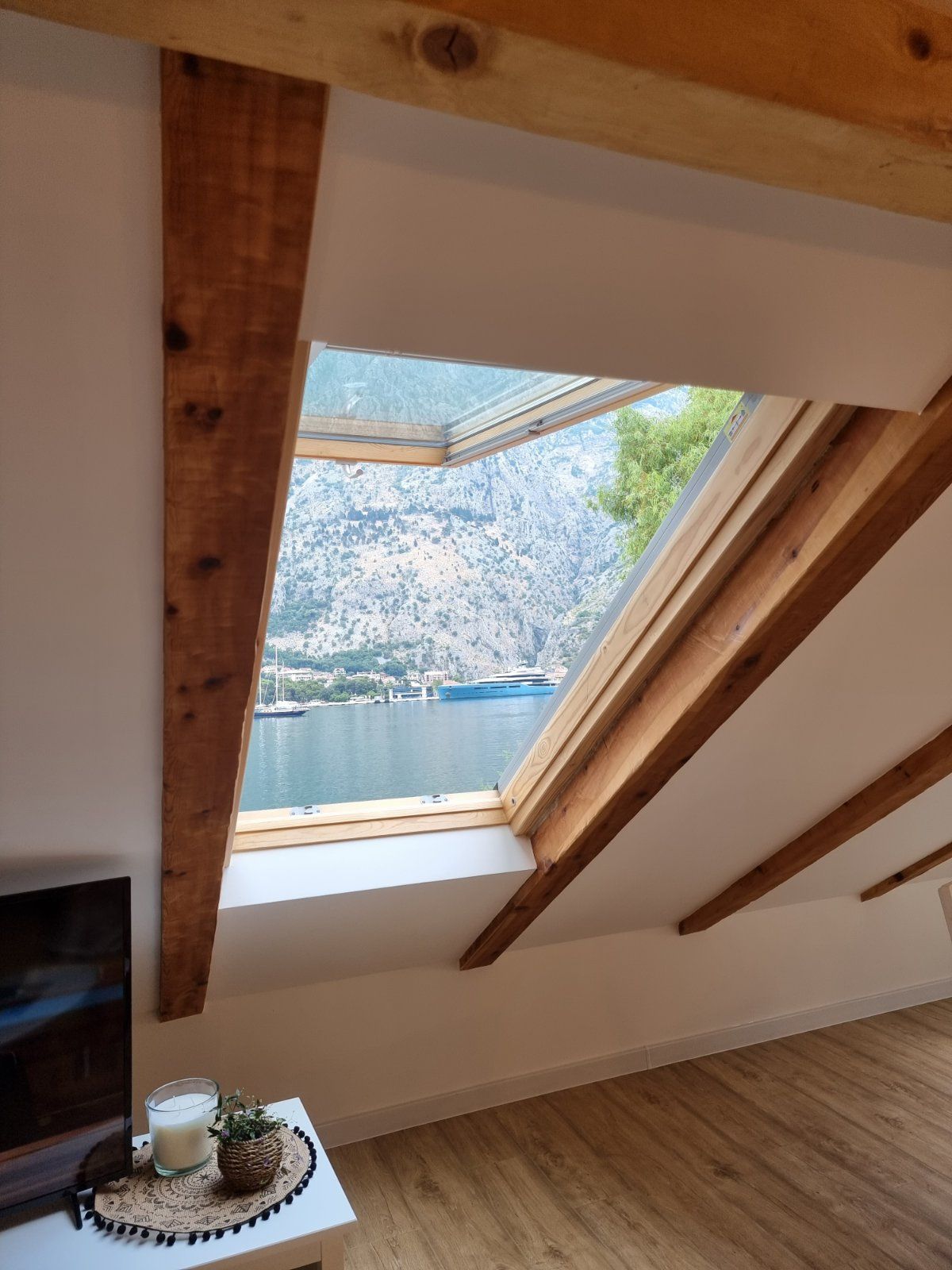 Beautiful panorama view over the bay of Kotor, harbour and old town is the first impression you will get from this 65m2 apartment. During the stay, you will enjoy an outstanding view of luxury cruise ships during early morning arrival or late afternoon departure from port of Kotor. This is a completely new apartment located inside a luxury residential complex, the apartment is fully equipped with free public parking, free wi-fi.The apartment is located 500m from the sea and 1.5km from downtown.