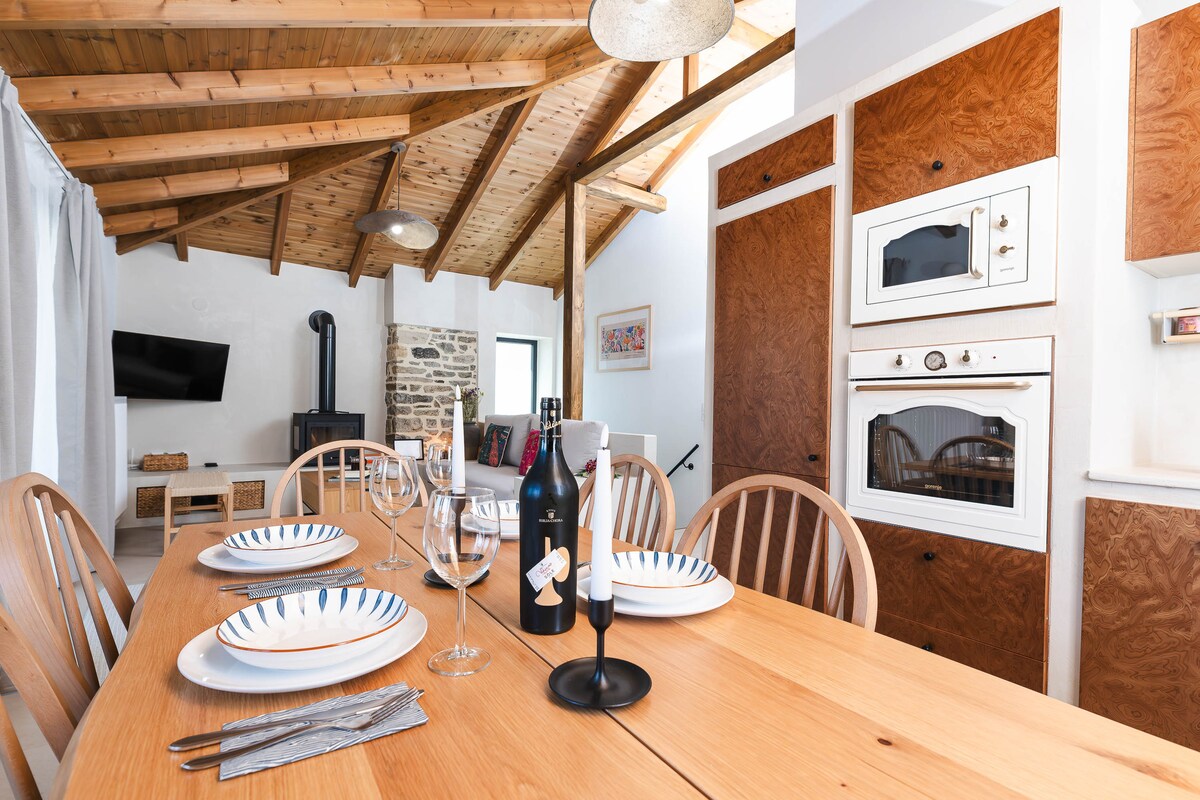 A home built with love – for moments of calm and connection. Stone, wood, and light. Two bedrooms, two bathrooms, balconies for every time of day, and a grill corner for unforgettable evenings. Located at the end of a quiet street, just a 5-minute walk from the center of Kavala. Here, every stay becomes a cherished memory. We warmly welcome guests of all ages – please note that we accept children aged 7 and above.