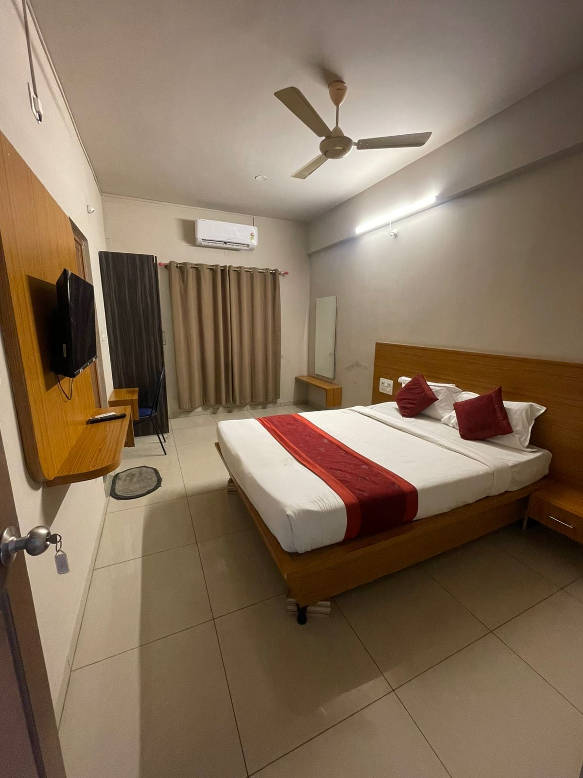 This is a compact, air-conditioned room located on the first floor. Perfect for solo travelers or couples, the room includes high-speed Wi-Fi and a smart TV for your entertainment. The room also features a private balcony overlooking a lively market street, offering a pleasant spot to relax and enjoy the view. Please note: Car parking and lift are not available. Nearby Attractions: Rock Beach – 5 mins drive / 15 mins walk White Town – 10 mins walk Sri Aurobindo Ashram – 10 mins walk