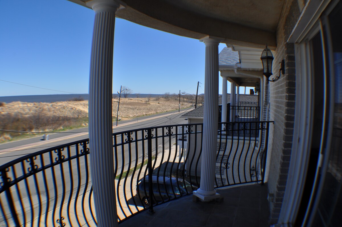 House is next to Ideal beach entrance, which has spectacular view from Manhattan all the way to Coney Island. Private backyard with gazebo and grill. Off street parking that can park 4 cars. Enjoy the beach & boardwalk to hiking trails, restaurants and life music Entertain. Train and ferry to NYC. Edison is 30 minutes away. Amusement park, water park and go carts just 1 mile away.
