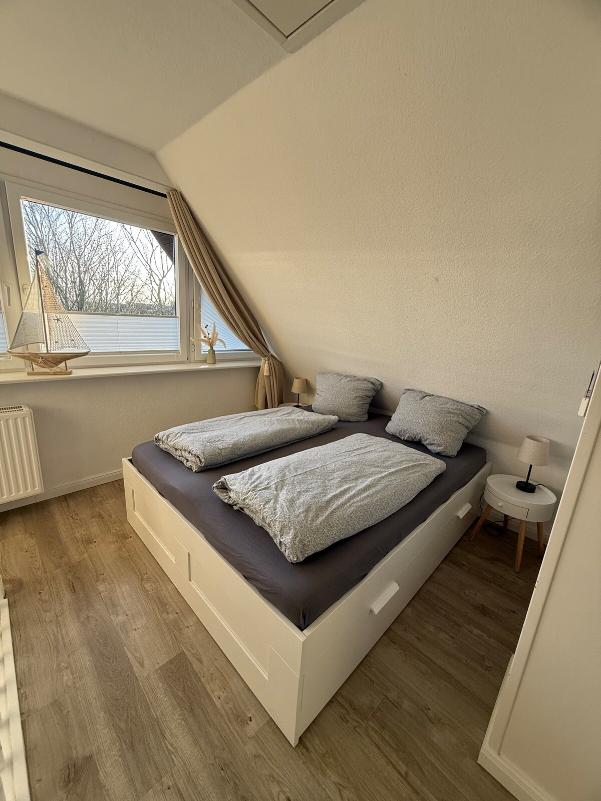 The apartment can accommodate 4 people. There is a bedroom with two beds and a sofa bed 1.40 x 2.00 m in the living room for 2 people. The small garden can be reached via the terrace. In the kitchen there is a stove, oven/microwave, Senseo coffee maker. The property is about 3 km from Westerland and the beach. However, these can be reached quickly and free of charge by bus. There is a bicycle rental nearby and there are various shopping opportunities.